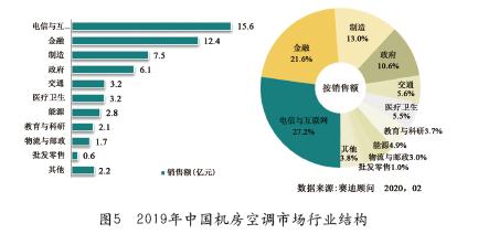 隨著新一代信息技術(shù)與實(shí)體經(jīng)濟(jì)的深度融合,數(shù)字經(jīng)濟(jì)、智能經(jīng)濟(jì)推動(dòng)各行業(yè)對(duì)數(shù)據(jù)中心的需求步入了一個(gè)新的階段。電信與互聯(lián)網(wǎng)、金融、制造業(yè)、政府等行業(yè)的數(shù)據(jù)中心需求,是拉動(dòng)中國(guó)機(jī)房空調(diào)市場(chǎng)快速增長(zhǎng)的主要?jiǎng)恿Α?019年,電信與互聯(lián)網(wǎng)、金融、制造業(yè)、政府是機(jī)房空調(diào)最主要的應(yīng)用行業(yè),在交通、醫(yī)療衛(wèi)生行業(yè)的應(yīng)用比例也有大幅增長(zhǎng),見(jiàn)圖5。