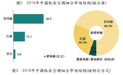 按照制冷方式不同,機(jī)房空調(diào)分為房間級(jí)、行級(jí)、機(jī)柜級(jí)等。從市場(chǎng)應(yīng)用來(lái)看,由于房間級(jí)制冷的建設(shè)成本低、方便維護(hù),傳統(tǒng)數(shù)據(jù)中心和中小型數(shù)據(jù)中心常采用該制冷方式。隨著新一代高密度計(jì)算和可變功率密度IT設(shè)備的應(yīng)用,房間級(jí)制冷系統(tǒng)的制冷效率、性能等受到限制。為提升制冷效率、縮短氣流路徑,行級(jí)甚至機(jī)柜級(jí)等近端制冷方式逐漸在市場(chǎng)中使用。從數(shù)據(jù)中心發(fā)展趨勢(shì)來(lái)看,隨著數(shù)據(jù)中心邊緣化、模塊化發(fā)展,行級(jí)空調(diào)得到快速推廣。根據(jù)賽迪顧問(wèn)統(tǒng)計(jì),2019年房間級(jí)機(jī)房空調(diào)仍然是市場(chǎng)的主流,其銷(xiāo)售額達(dá)39.3億元,市場(chǎng)占有率為68.5%,較2018年有所減少;2019年行級(jí)機(jī)房空調(diào)市場(chǎng)銷(xiāo)售額達(dá)15.1億元,市場(chǎng)占有率為26.2%,增長(zhǎng)率達(dá)18.6%,見(jiàn)圖3。