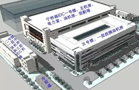 寧橋數(shù)據(jù)中心是上海移動(dòng)利用原金橋地區(qū)惠而浦廠房改建成的互聯(lián)網(wǎng)企業(yè)定制的高端數(shù)據(jù)中心;荻謴S區(qū)內(nèi)有一號(hào)樓廠房、二號(hào)樓廠房和五號(hào)樓廠房,老廠房的建設(shè)面積為18500平方米,建筑層數(shù)3層,改建后共7個(gè)機(jī)房模塊,共安裝機(jī)柜2000個(gè),總外市電容量2路16000kVA。