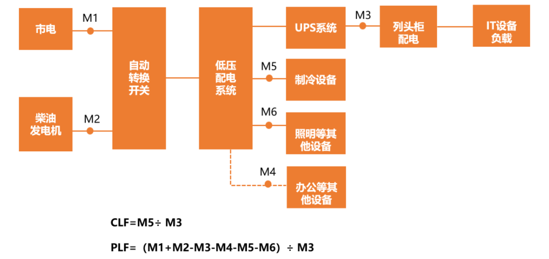 CLF和PLF可以看作是PUE的補(bǔ)充和深化,通過(guò)分別計(jì)算這兩個(gè)指標(biāo),可以進(jìn)一步深入分析制冷系統(tǒng)和供配電系統(tǒng)的能源效率。