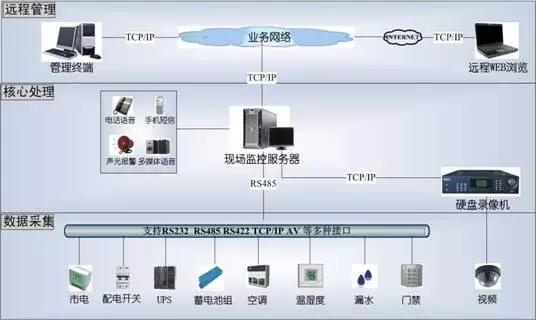 機(jī)房環(huán)境監(jiān)控系統(tǒng)是一個(gè)綜合利用計(jì)算機(jī)網(wǎng)絡(luò)技術(shù)、數(shù)據(jù)庫(kù)技術(shù)、通信技術(shù)、自動(dòng)控制技術(shù)、新型傳感技術(shù)等構(gòu)成的計(jì)算機(jī)網(wǎng)絡(luò),提供的一種以計(jì)算機(jī)技術(shù)為基礎(chǔ)、基于集中管理監(jiān)控模式的自動(dòng)化、智能化和高效率的技術(shù)手段,系統(tǒng)監(jiān)控對(duì)象主要是機(jī)房動(dòng)力和環(huán)境設(shè)備等設(shè)備(如:配電、UPS、空調(diào)、溫濕度、漏水、煙霧、視頻、門(mén)禁、消防系統(tǒng)等)。